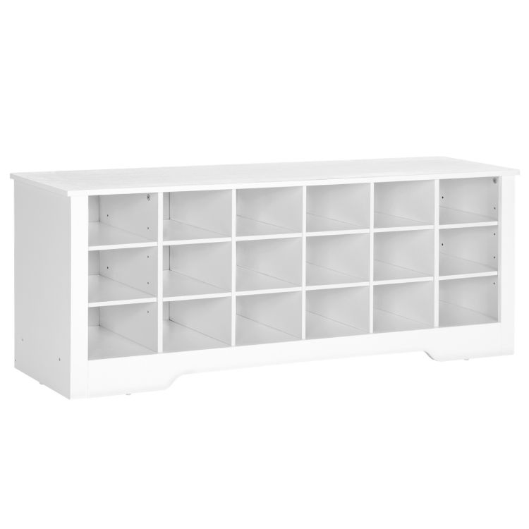 مقعد الحذاء, 18 cubbies shoe storage bench, multifunctional shoe organizer, long entryway bench, رفوف قابلة للتعديل, لغرفة النوم, غرفة طينية, المدخل, خزانة, white wt18hx01
