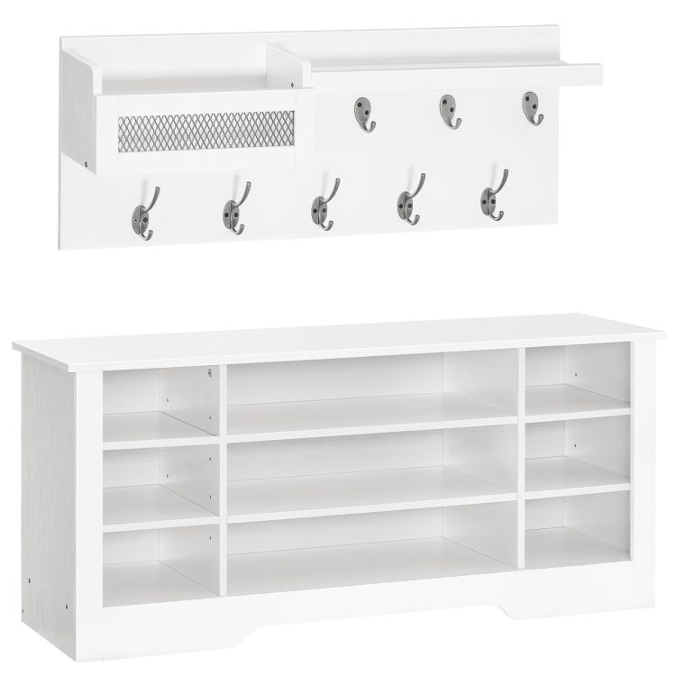 مجموعة مقعد الحذاء مع المعطف, رف معطف شجرة القاعة مع تخزين الأحذية, 39.4 رف أحذية مدخل بوصة مع رف معطف, مقعد الطين مع التخزين والسنانير, رفوف قابلة للتعديل, أبيض
