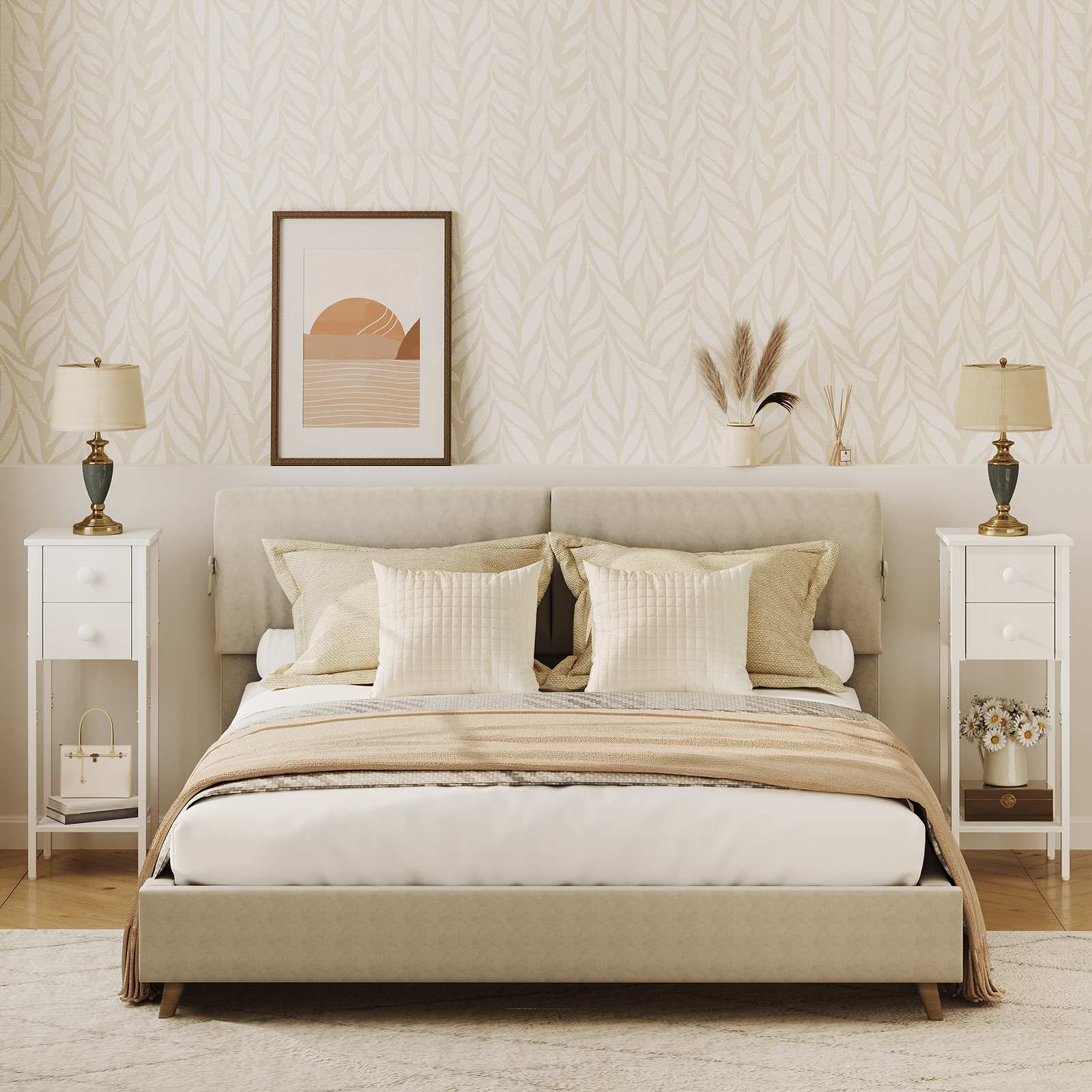 - مواد الجودة: طاولة السرير البيضاء هذه مصنوعة من الخشب المضغوط والمعدن الفاخر, ضمان الاستقرار الجيد والمتانة. الجزء العلوي يمكن أن يتحمل ما يصل إلى 31.8 كجم والرف السفلي 25 كلغ, مما يجعلها مناسبة للاستخدام اليومي أو المناسبات المكتبية
