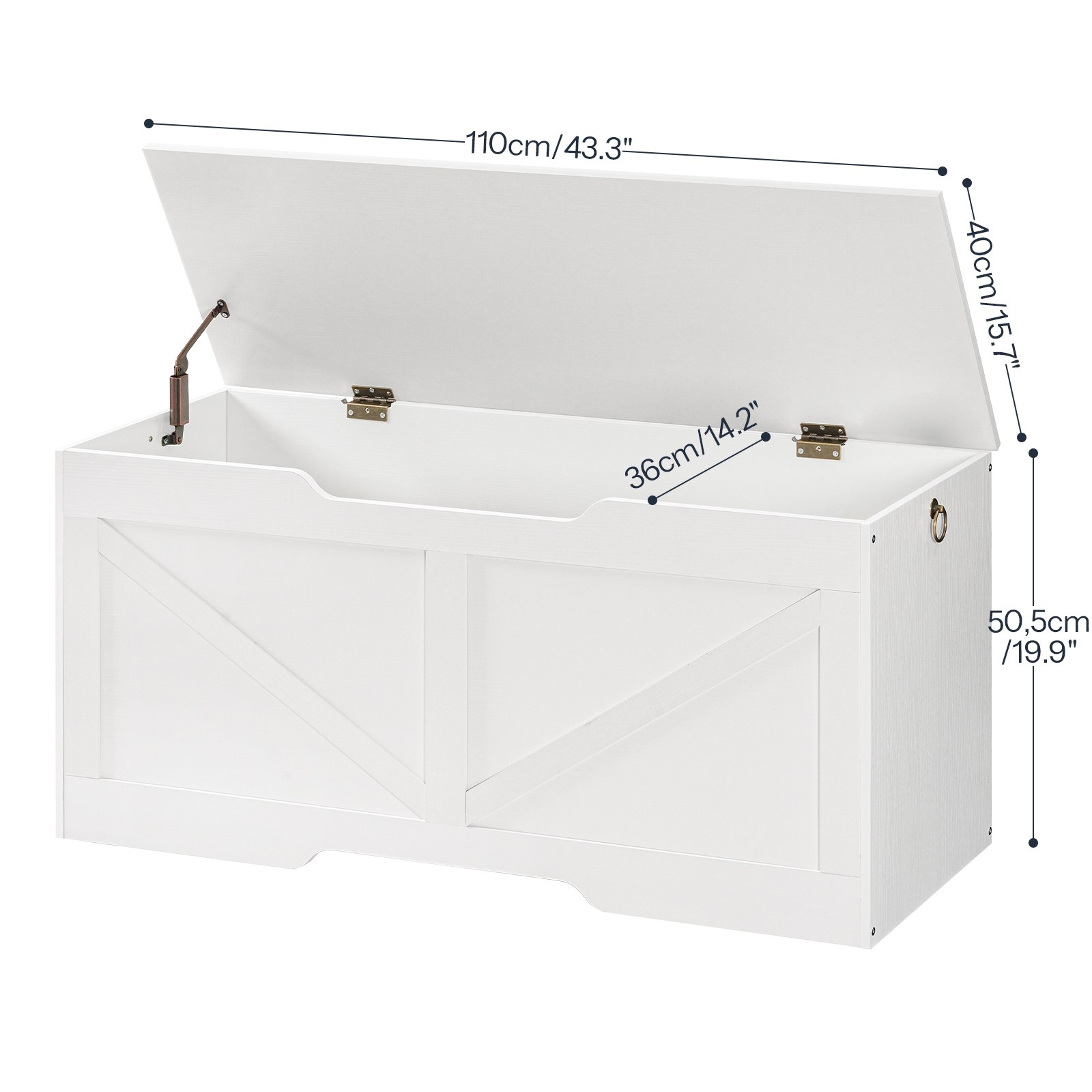 مقعد تخزين مع غطاء, صندوق تخزين الألعاب بمقابض, 110سم صندوق مستقر قوي, مناسبة للأطفال, المدخل, غرفة الجلوس, أبيض