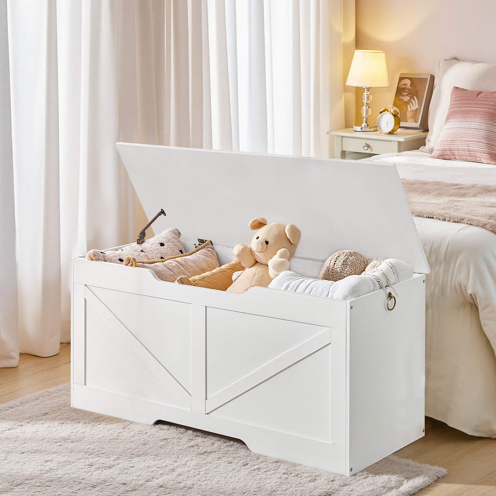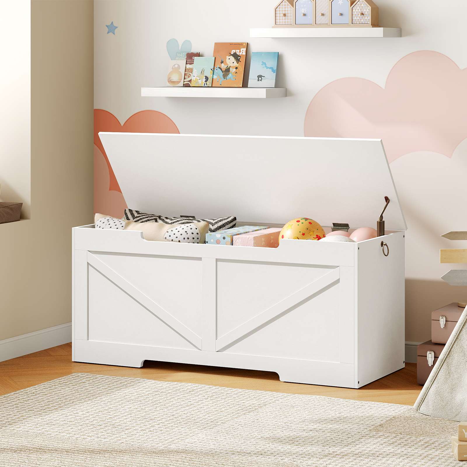 Child-Friendly Design: The children’s toy chest provides dedicated storage space to assist children in developing good organizing habits and independence, which is beneficial for long-term growth.