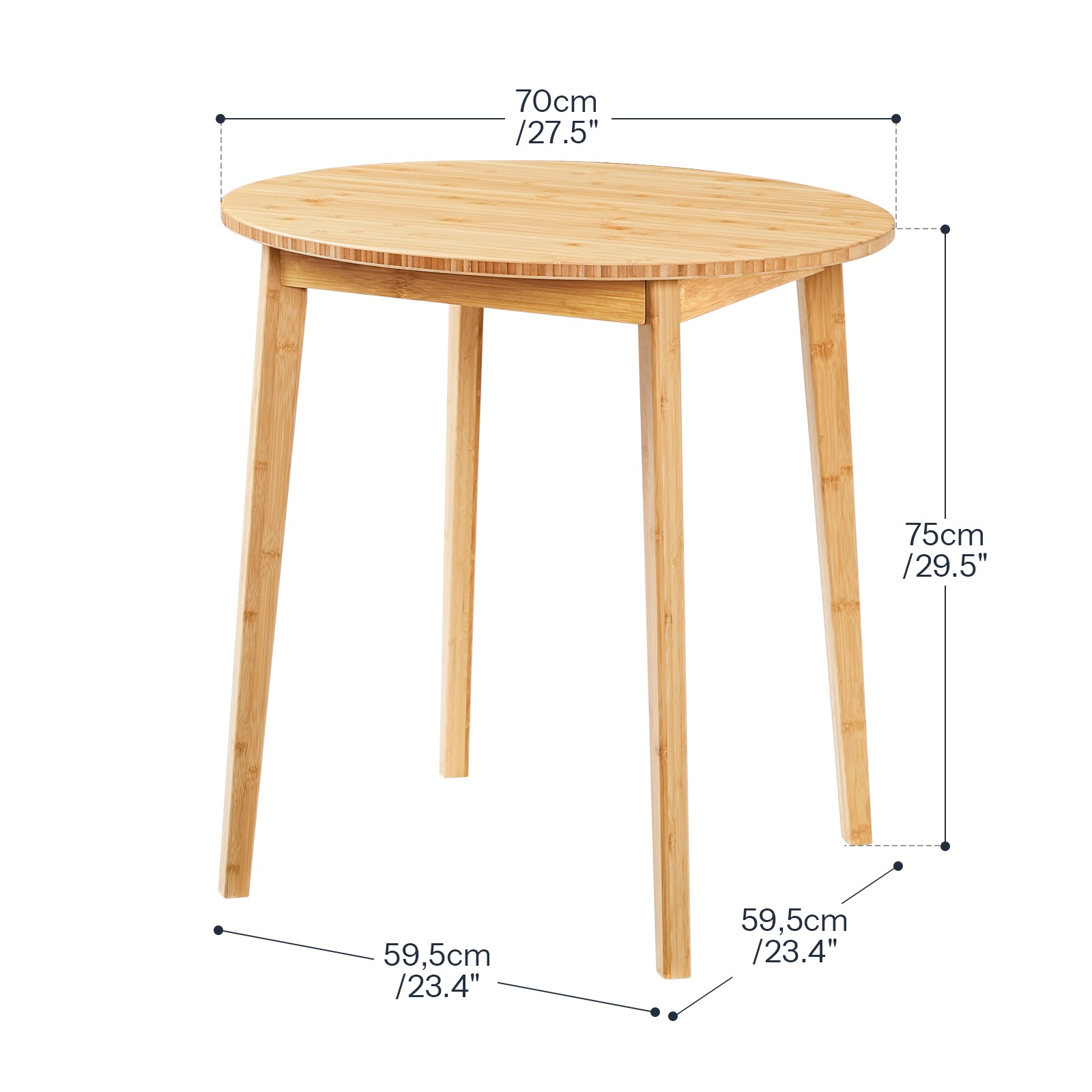 طاولة طعام مستديرة من الخيزران, 2-طاولة مطبخ مدمجة للشخص, 69.85سم طاولة متعددة الوظائف للمساحات الصغيرة, مناسبة لغرفة الطعام, غرفة الجلوس, مكتب, مطبخ, شقة, لمسة نهائية طبيعية