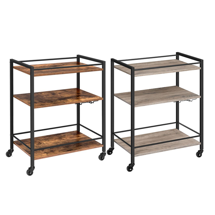 Sloužící vozík, 3-kuchyňský vozík na kola na kolech, skladovací police s brzdami, vyrovnávání nohou, Volný vozík pro kuchyň a obývací pokoj, ložnice, vstupní, Snadná montáž