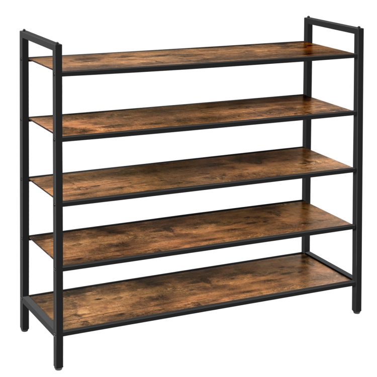 Průmyslový stojan na boty, Stohovatelný organizátor úložiště obuvi s 5 police, 5 Slova bot pro vchod, skříň, ložnice, ubytovna, Robustní konstrukce, Snadná montáž, rustikální hnědá