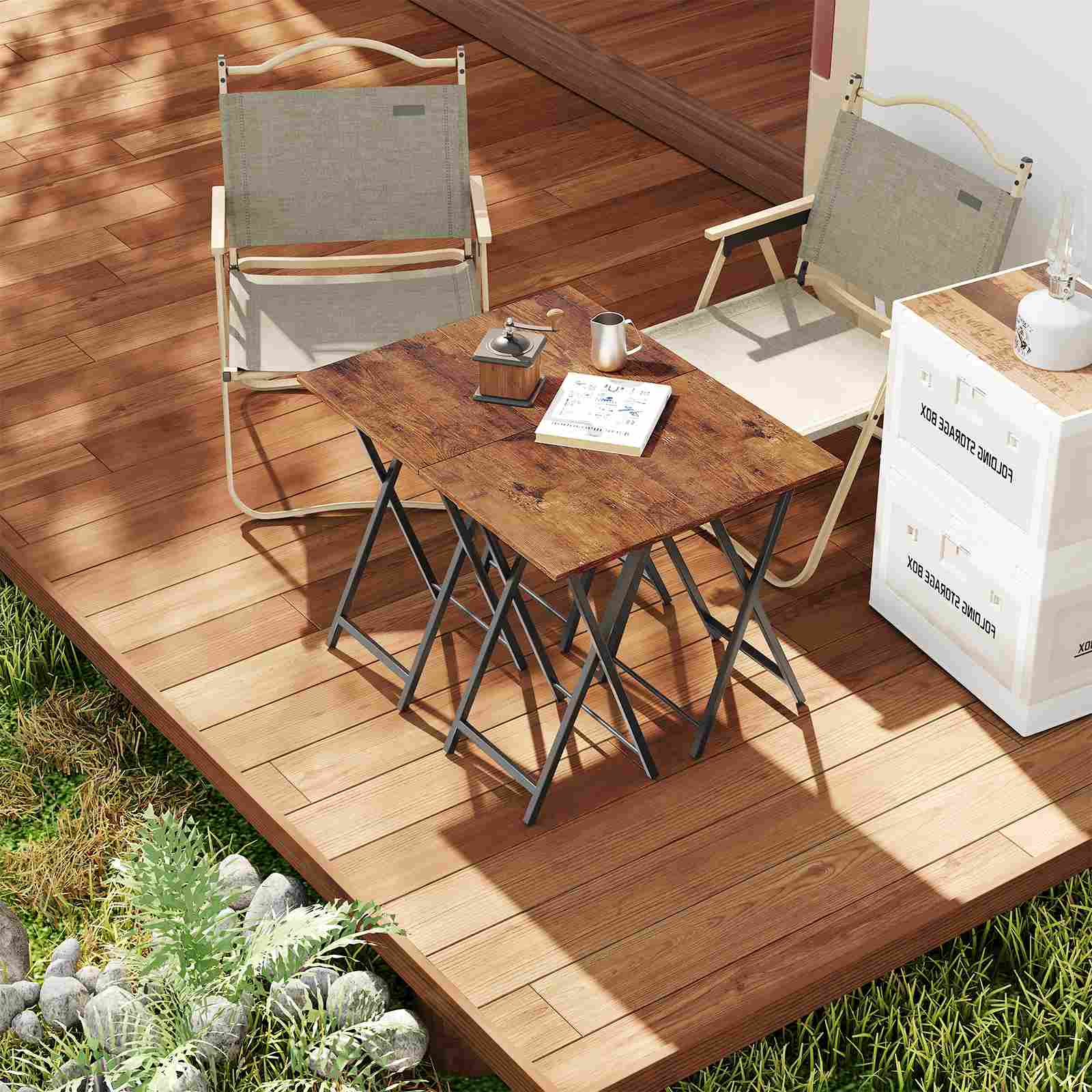 Dostatek místa na stole pro všestranné použití: Každý odkládací stolek má standardizované rozměry 48 cm (L) × 36cm (W) × 66.5cm (H), poskytuje dostatečnou plochu pro umístění jídla, nápoje, notebooky, a další denní předměty. Produkt je navržen tak, aby uživatelům umožnil pohodlně si vychutnat jídlo, občerstvení, a zábavu při sezení na pohovkách nebo křeslech, zvýšení každodenního pohodlí.