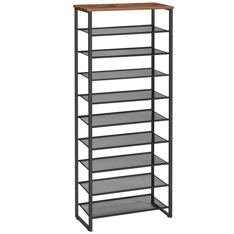 10-stojan na stupň bot, Slova organizátoru organizátoru boty s velkou kapacitou, jednotka skladování obuvi pro 18-27 Dvojice bot, pro vchod, chodba, skříň, kolejní místnost, průmyslový, rustikální hnědá