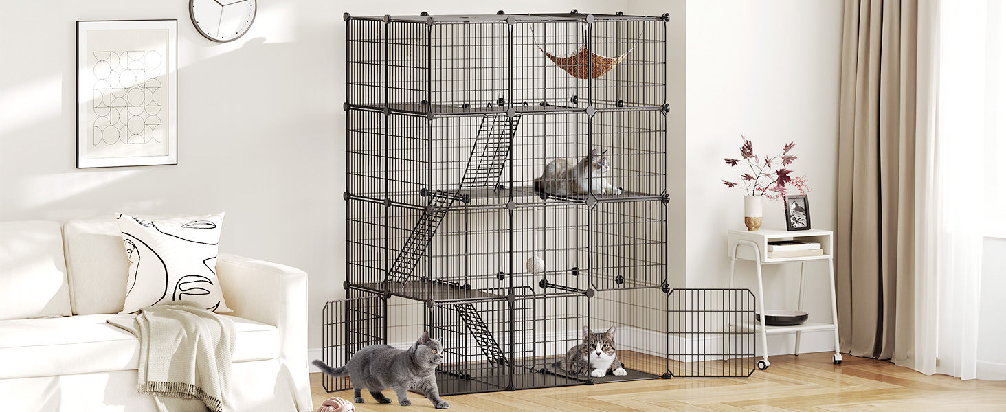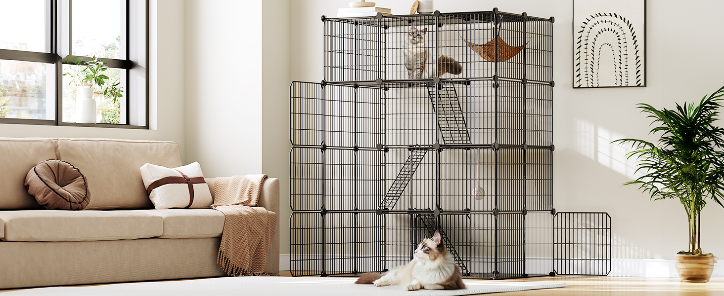 - Extra velká kočičí klece: velikost na 42 x 29 x 55.9 palce, vnitřní výběh pro kočky nabízí prostorné hřiště pro vašeho energického chlupatého kamaráda na všech úrovních. Čtyřúrovňové domy pro kočičí klece vám umožňují rozdělit klec na krabici na vrh, krmení, Odpočívá a hrací prostory samostatně