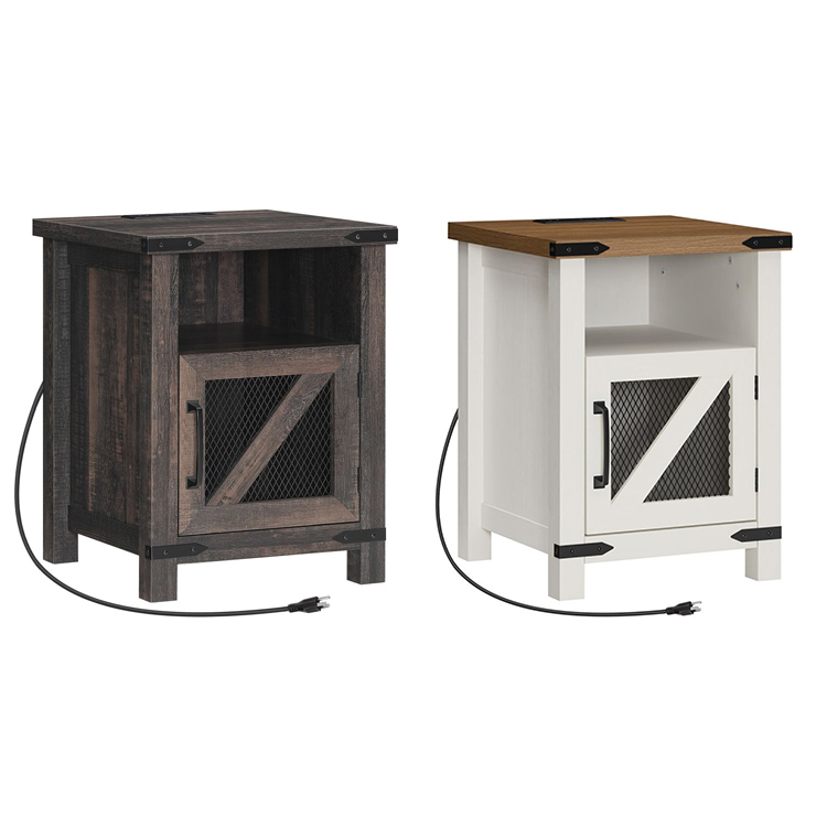natbord med ladestation, Sluttabel med åben skuffe, Sidebord med USB -porte og forretninger, til små rum, soveværelse, Rustik brun