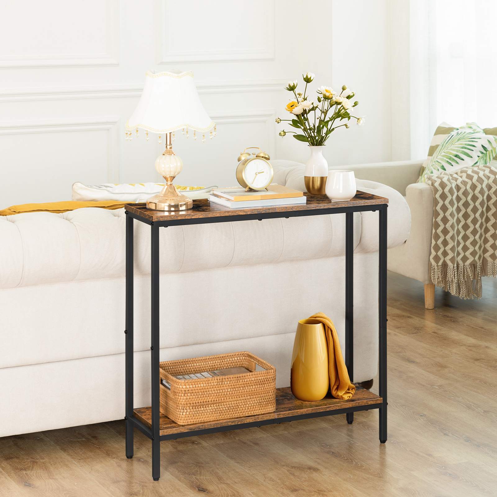 75cm smal konsolbord, Multifunktionelt Entryway Sofa Sidebord med opbevaringshylder, Udstillingsbord til entre, Soveværelse, Foyer, Stue, Rustik brun & Sort