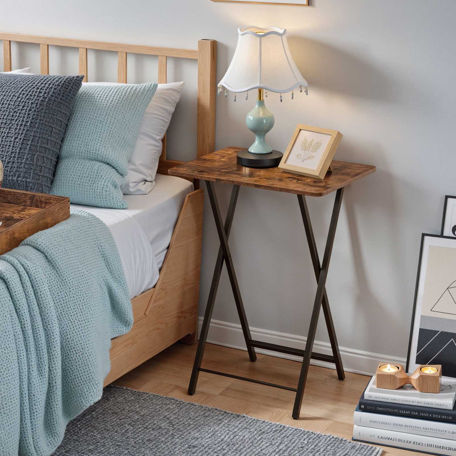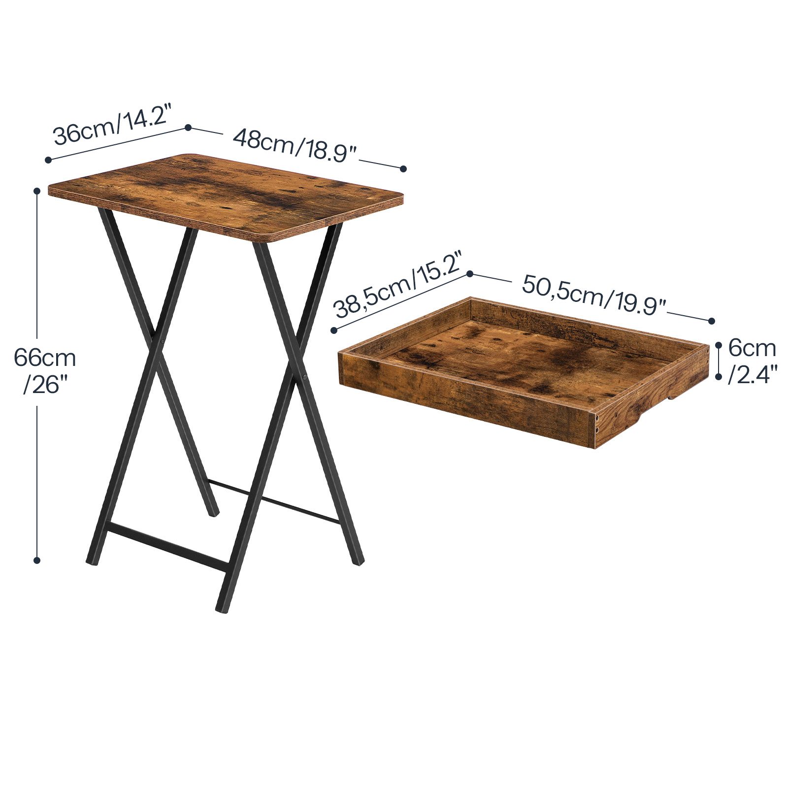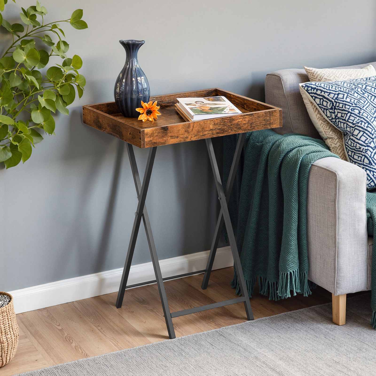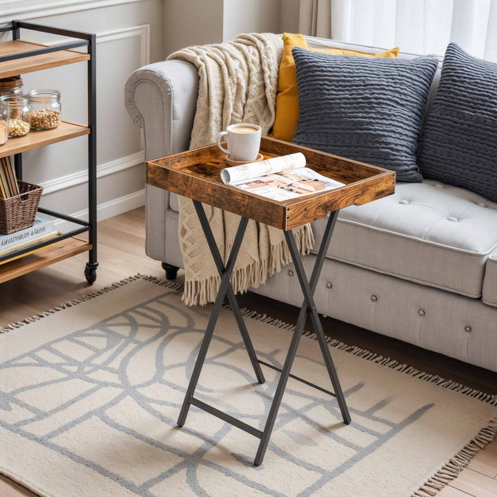 Sammenfoldelig tv-bakkebord med aftagelig serveringsbakke, Stabilt snackbord til små rum, Bærbart endebord til snacks, Måltider & Laptops i stuen, Rustik brun