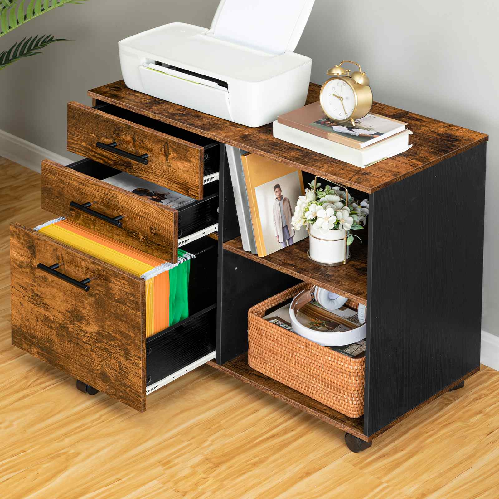 Alsidig & Stilfuldt design: Featuring open storage spaces, file drawers and a concealed cabinet, this filing cabinet is engineered to keep office equipment, filer, documents and other supplies organized. Its compact size allows placement beside or under a desk, while the sleek, modern finish is well-suited for offices and study rooms.