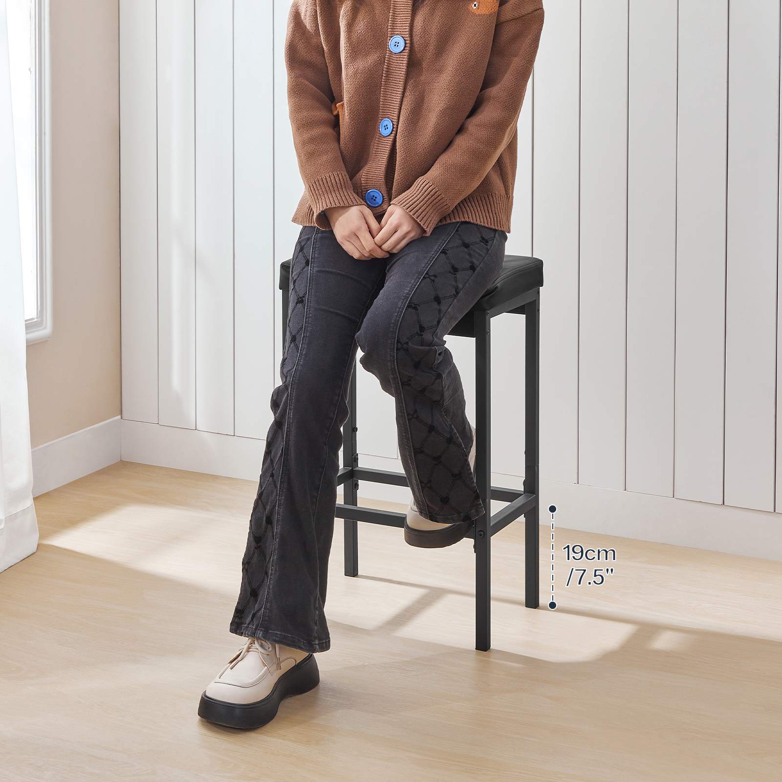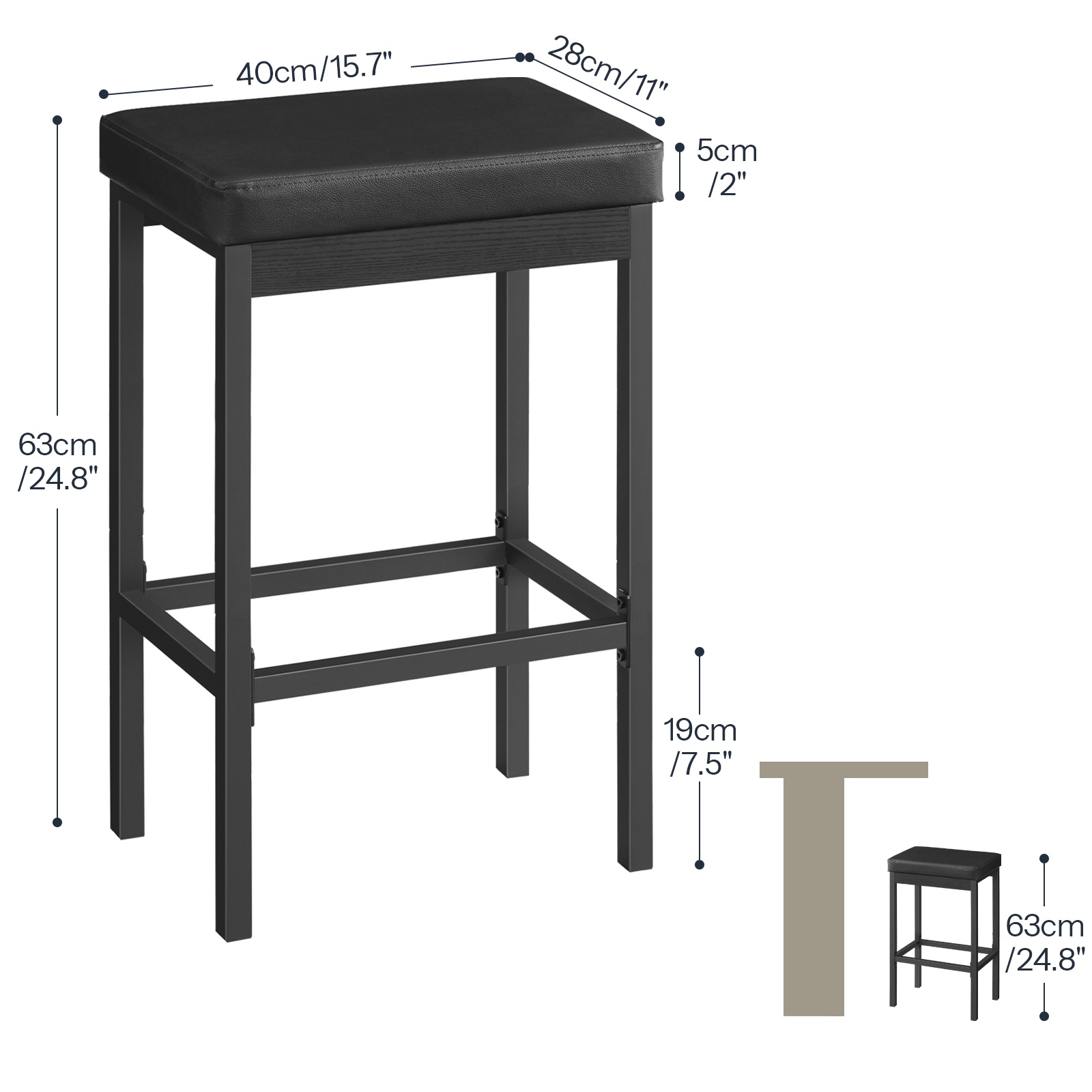Wide Application Scope: Mit einer angemessenen Größe, this set of bar chairs is widely applicable. It is suitable for home scenarios such as kitchens, Esszimmer, bedrooms and studies, as well as commercial places like pubs and cafes. Wenn nicht in Gebrauch, it can be stored under the bar counter to save floor space.