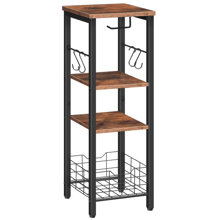 Klopapierhalterung, 4-Stufe Badezimmerlagerorganisator, Schlankes Lagerregal mit S -Haken und, Schmaler Lagerregal mit Netzkorb, kleiner Toilettenpapierständer, rustic brown and black bf03bc01