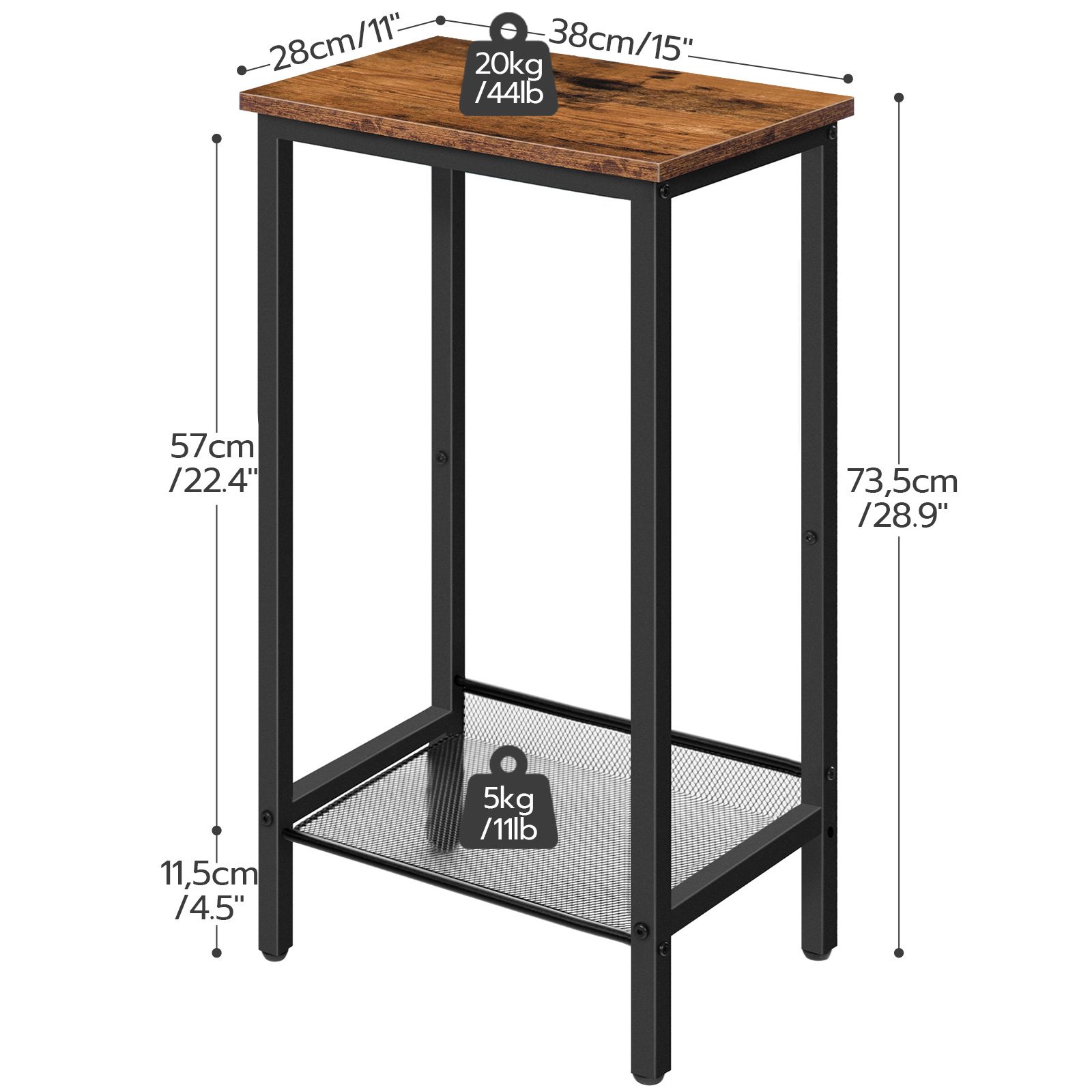 Hoher Beistelltisch, Beistelltisch im Industriestil mit verstellbaren Netzregalen, Multifunktionaler Nachttisch für Schlafzimmer, Wohnzimmer und Flur, Rustikales Braun & Schwarz