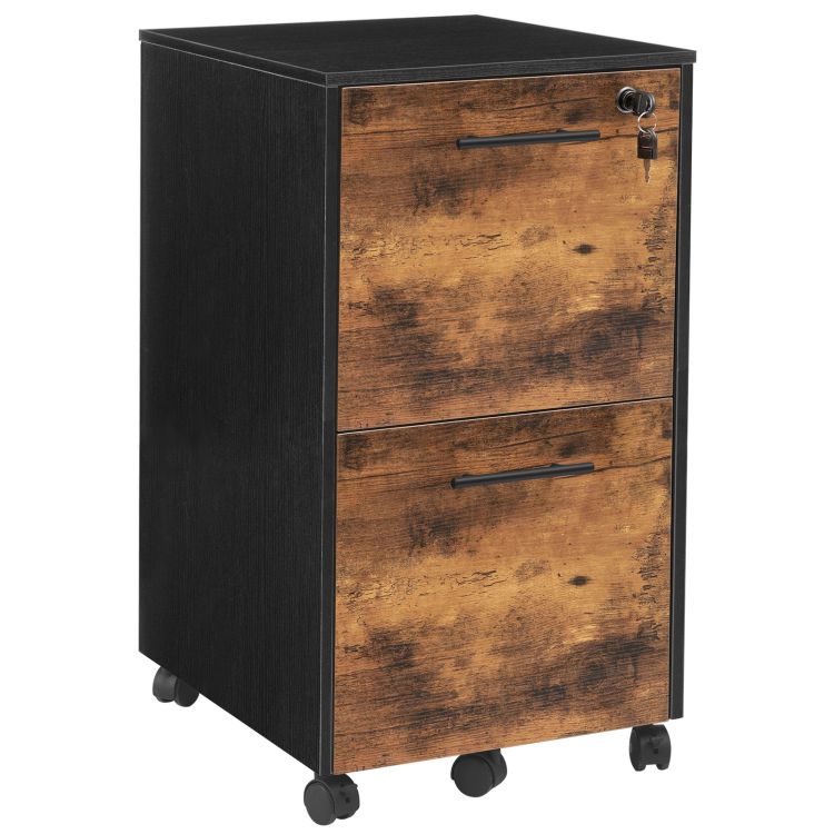 2 Schubladen-Aktenschrank, Kabinett, Mobile Büroschrank für Home Office, Rolldateischrank mit 5 Räder, Für Brief/A4 -Größe, Hängendateiordner, rustic brown and black bf03wj01g1