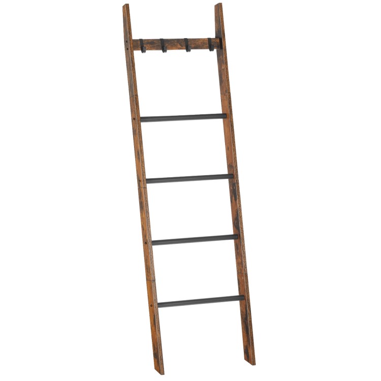 Deckenleiter für Wohnzimmer, 5.2FT(63'' '), 5-Etagen-Wandhandtuchhalter mit Haken, Dekoratives Bauernhaus-Deckenregal, Schlafzimmer, Rustikalbraun und schwarz