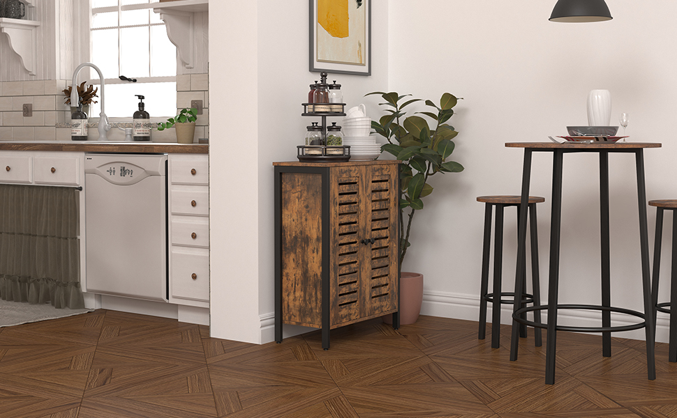 Fußbodenschrank, Lagerschrank mit 2 verstellbare Einlegeböden, Akzentschrank, Sideboard mit Lüftentüren, für Wohnzimmer, Schlafzimmer, Flur, Küche, industriell, rustikales Braun