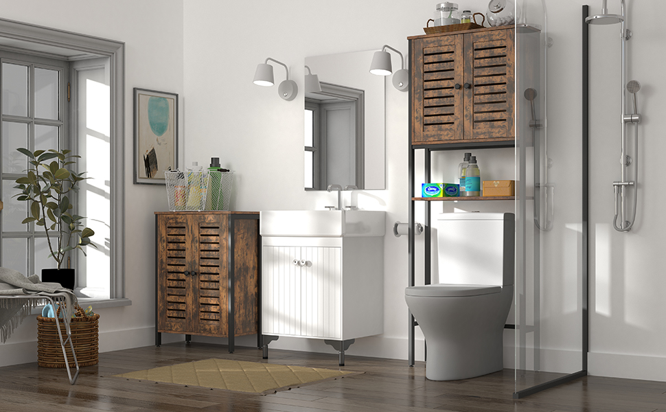 Fußbodenschrank, Lagerschrank mit 2 verstellbare Einlegeböden, Akzentschrank, Sideboard mit Lüftentüren, für Wohnzimmer, Schlafzimmer, Flur, Küche, industriell, rustikales Braun bf27cw01