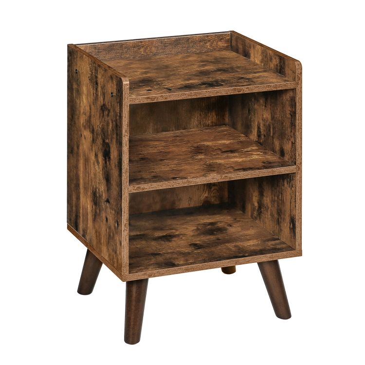 Beistelltisch, 3-Tier -Nachttisch mit offenem Fach, Holzakzent -Beistelltisch für kleine Räume, stabile und robuste Konstruktion, rustikales Braun