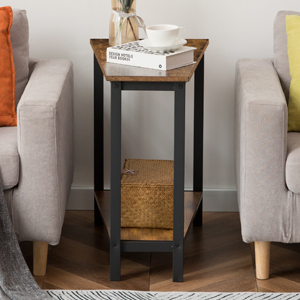 rustikaler brauner Keil Endtisch, Ließerwedge -Seitentisch mit Speicher, Industriedreieck Akzenttisch für kleine Raum, Ecke, Wohnzimmer, Wohnung