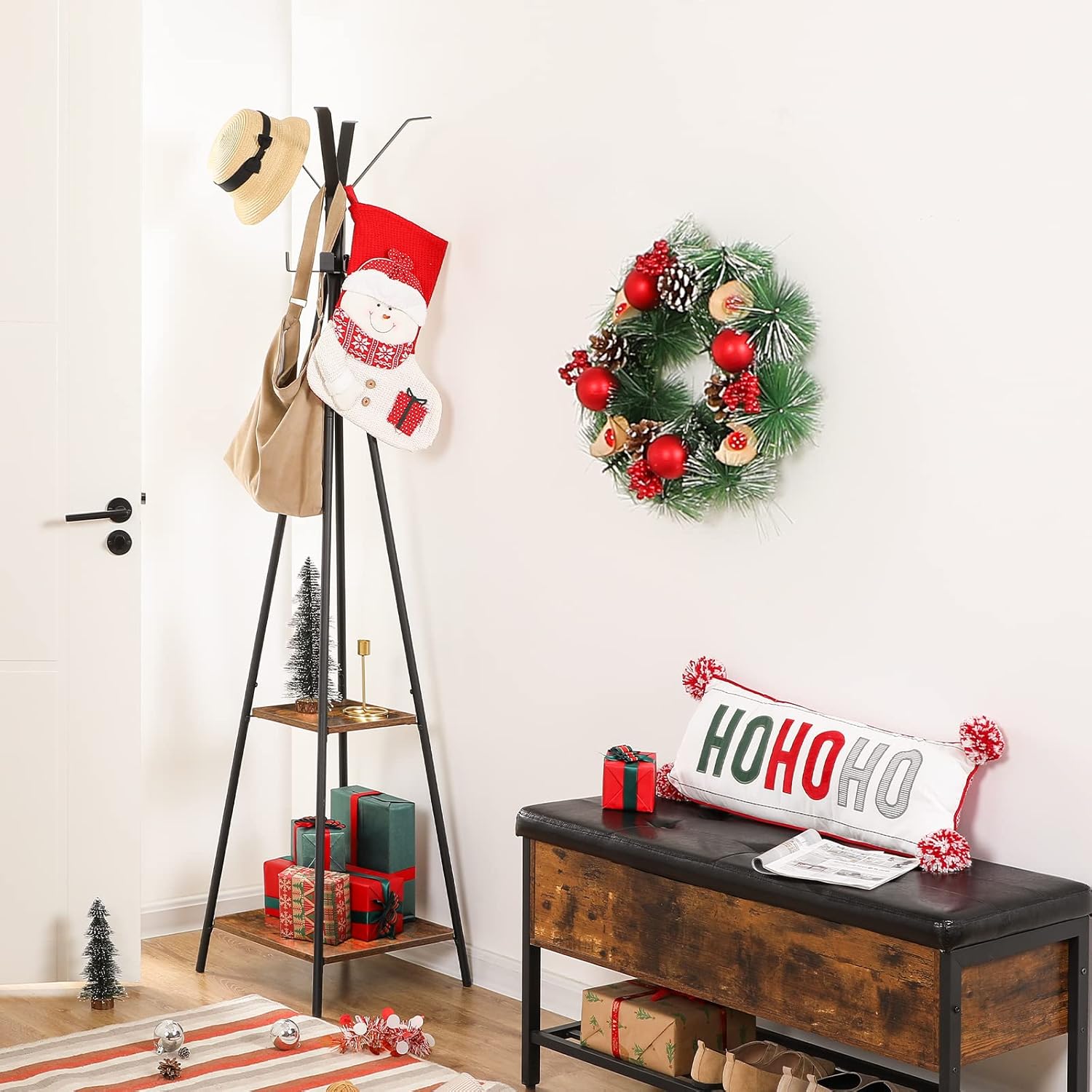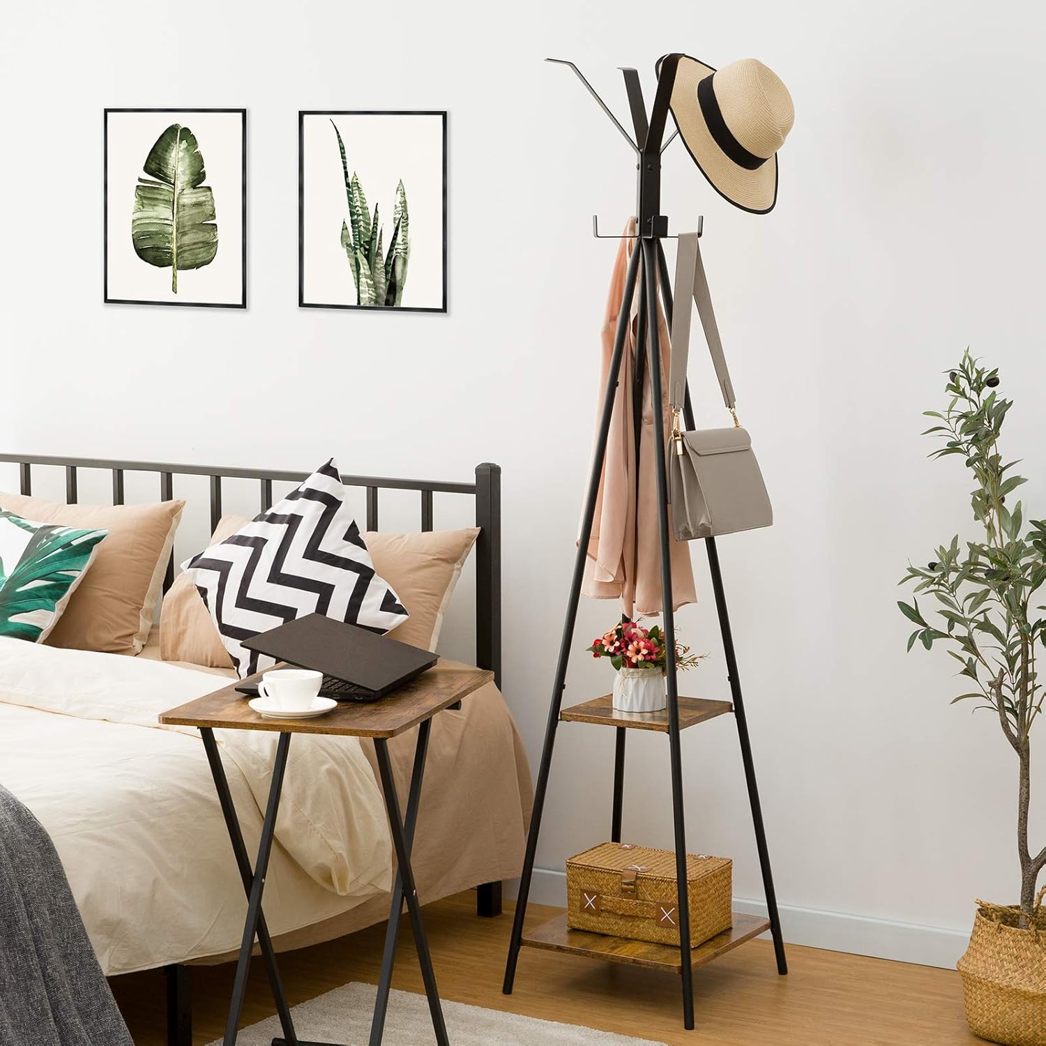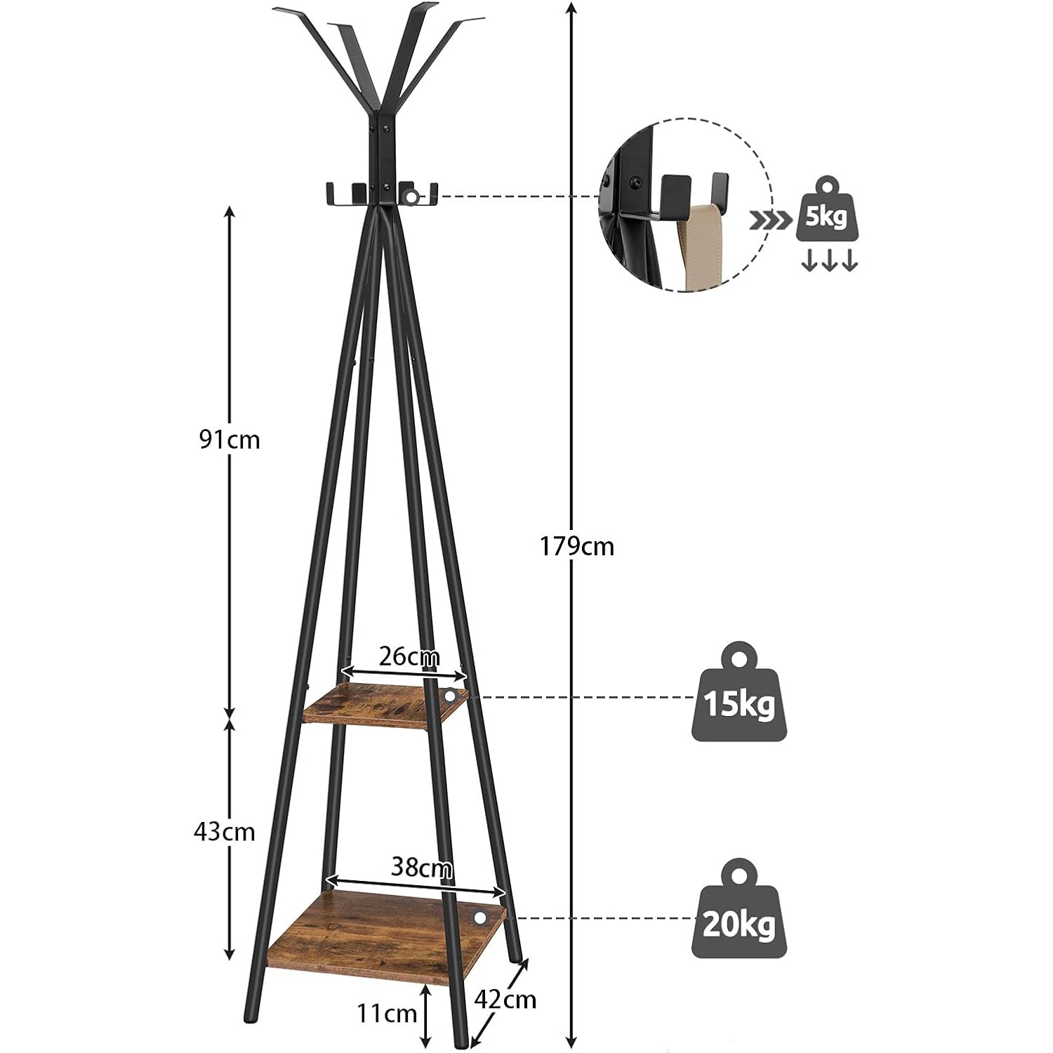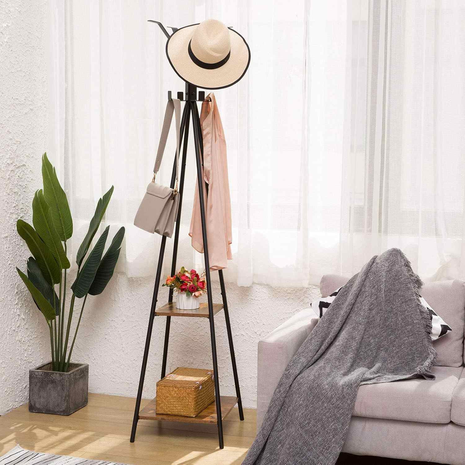 Ideal for Entryway Use: With overall dimensions of 42cm (L) x 42cm (W) x 179cm (H), the coat rack is suitable for narrow entrances, occupying minimal space. It enables orderly storage of randomly placed clothes and bags, while the shelves can hold items such as vases to enhance room decoration.
