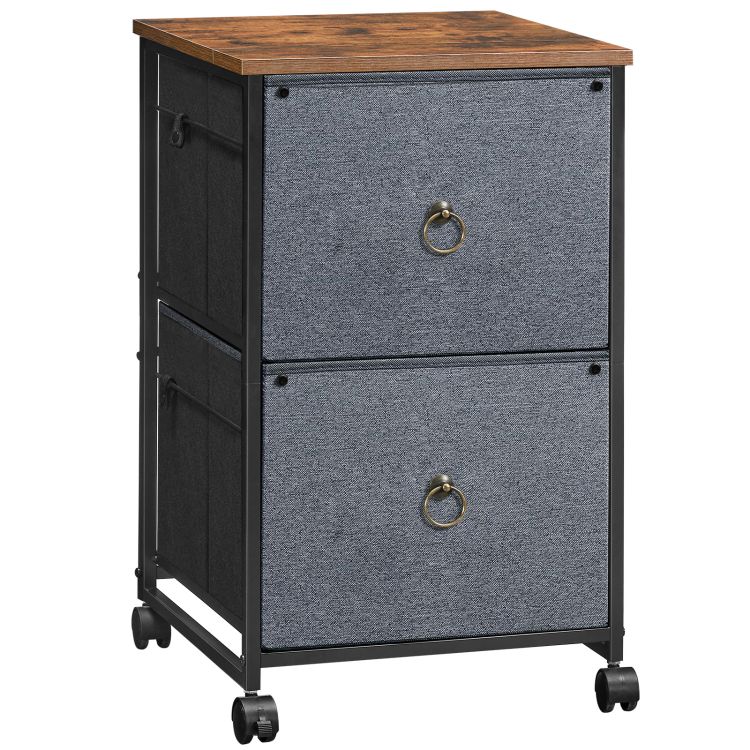 2 Mobiler Aktenschrank mit Schublade, Rollender Druckerständer, Vertikaler Aktenschrank, Büroschrank, Aktenschrank für das Home Office, A4/Letter-Format, Schublade für Vliesstoffe, Schwarz und rustikalbraun