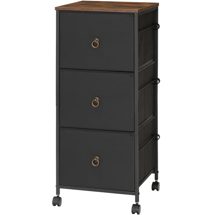 3-Schubladen-Aktenschrank, Vertikaler Aktenschrank, Büroschrank für das Home Office, Der mobile Druckerständer ist für die Größe A4/Letter geeignet, Verstellbare Aufhängung, Schublade für Vliesstoffe, Rustikalbraun und schwarz