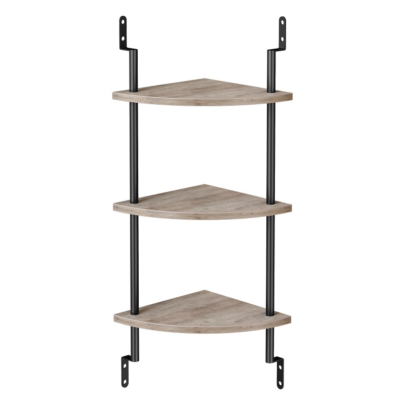 Vintage 3-Tier-Eckschelfwand montiert, Graue und schwarze Ecke schwimmende Regale Lagerregale, Pflanzenausstellungsbuch für Wand im Wohnzimmer, Küche, Studie (Kopieren)