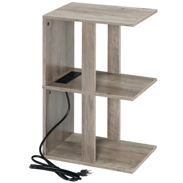 Nachttisch mit Ladestation, 3 Tier -Endtabelle mit USB, Schmaler Beistelltisch mit Lagerregal, kleiner Sofa Nachttisch für kleine Räume, Schlafzimmer, Greige BG90UBZ01