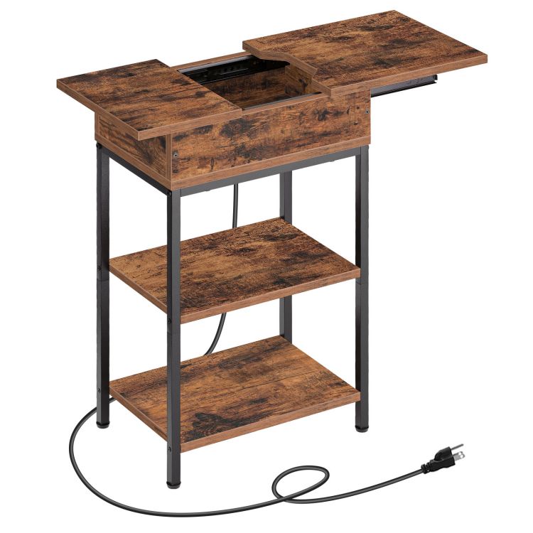 Beistelltisch mit Ladestation, narrow end table with usb ports and outlets, Nachttisch für kleine Räume, Schlafzimmer, Wohnzimmer, Büro, rustic brown ethr5701z
