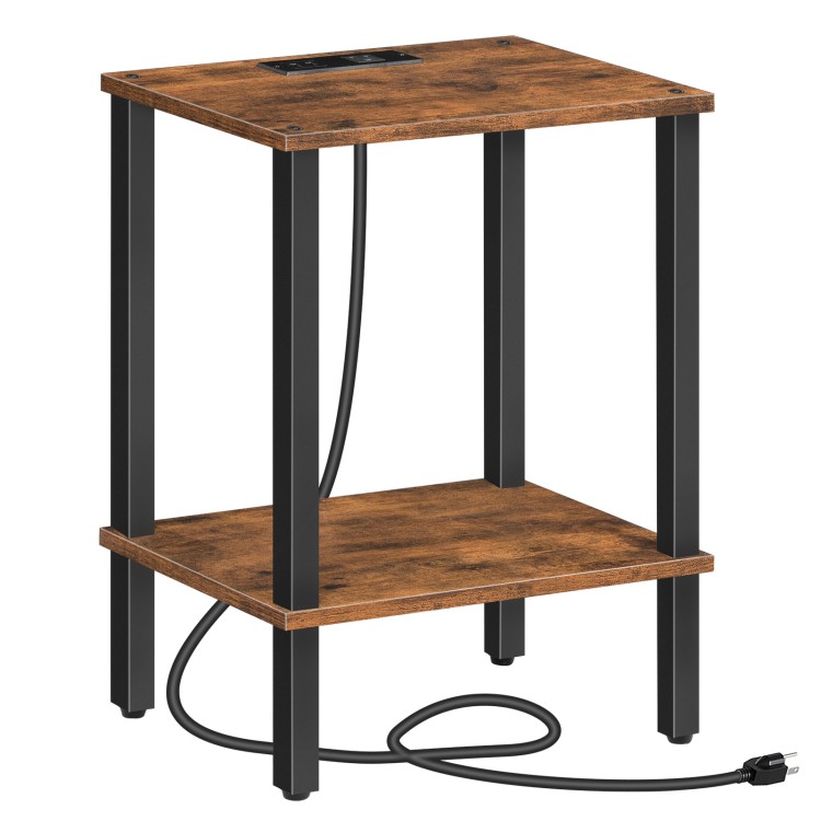 Seitentisch, Beistelltisch mit Ladestation, Nachttisch mit USB -Ports und Outlet, Holz Nachttisch für kleinen Raum, Wohnzimmer, Schlafzimmer, Einfache Montage, rustikales Braun