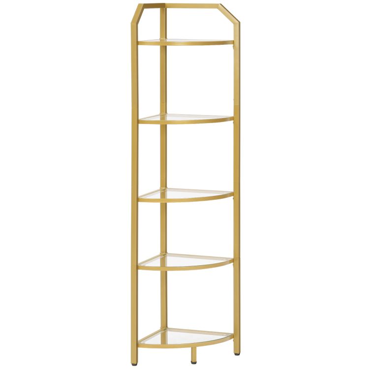 Moderner Stil 5-Tier-Eckschelfständer, Goldenes Eck-Bücherregal, Regale aus gehärtetem Glas, Badezimmer-Organizer, Eckpflanzenständer, für Wohnzimmer, Studie, Balkon, Innenministerium