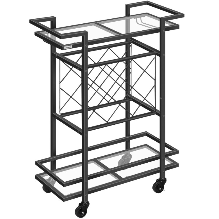Glasriegelwagen, Home Bar, der einen Wagen serviert, 3 Tierwagen mit trinken 7 Weinflaschenregale, Glashalter, Getränkewagen auf Rädern für die Küche, Bar, Esszimmer, Wohnzimmer, im Freien, Schwarz