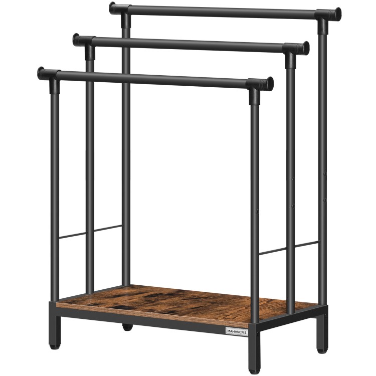 Deckenständer, Freistehender Handtuchhalter mit Ablage, 3 Etagen-Handtuchständer, Deckenhalter, Metalldeckenleiter für Badezimmer, 26.4" L x 11.8" B x 29.3" H, Rustikalbraun und schwarz