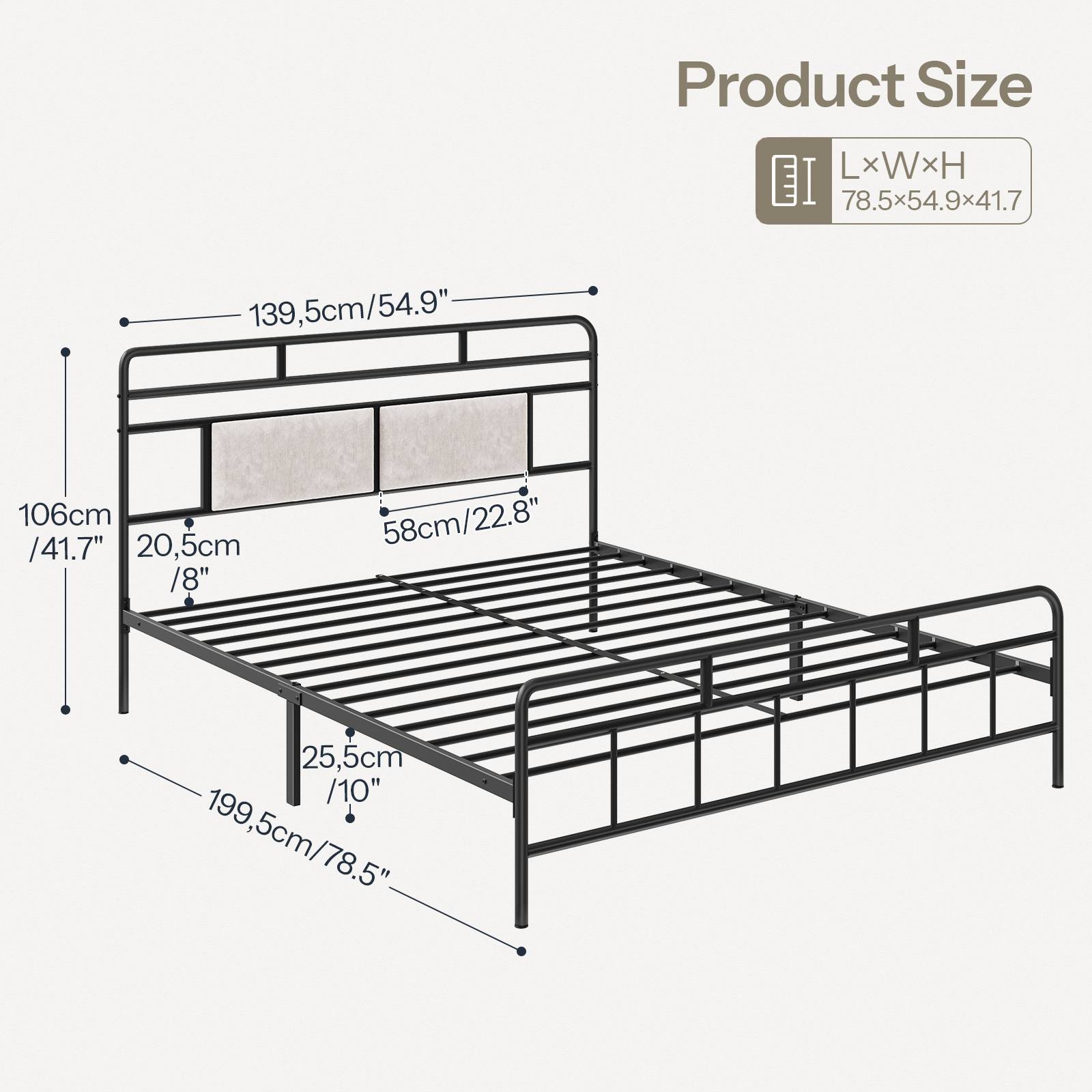 Full Size Heavy-Duty Black Metal Bed Frame with Upholstered Headboard, Soundless Structure, Δεν απαιτείται ελατήριο κουτιού