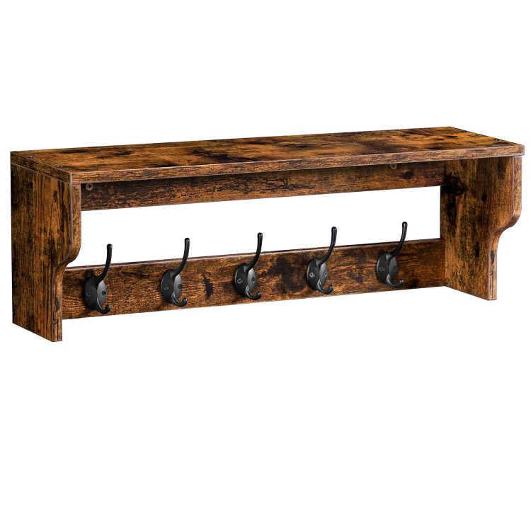 παλτό ράφι τοποθετημένο τοίχο, ράφι τοίχου, παλτό 5 κινητό γάντζο, Hall Coat Hat Hook, κρεμαστή σιδηροτροχιά, ισχυρός και σταθερός, για είσοδο, τουαλέτα, καθιστικό, Βιομηχανικό ρετρό στυλ