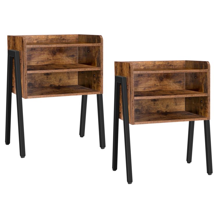 κομοδίνο σετ από 2, στοίβατο τελικό τραπέζι με 2 Ανοιχτά μπροστινά διαμερίσματα αποθήκευσης, 3 Τραπέζια του κρεβατιού για μικρούς χώρους, Ξύλο εμφάνιση τραπέζι με μεταλλικό πλαίσιο, rustic brown bf02bzp201
