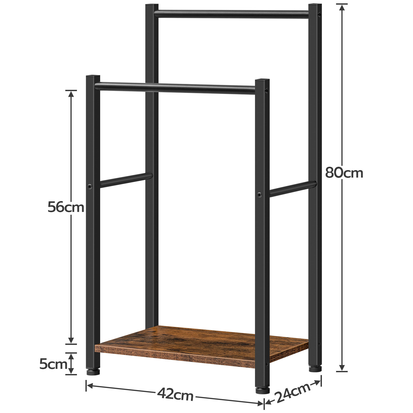 Ανεξάρτητη κρεμάστρα για πετσέτες, 2-Βιομηχανική Μεταλλική Πετσοθήκη Tier με Ράφι, Ρουστίκ καφέ & Μαύρος, Σχάρα στεγνώματος και οθόνης πολλαπλών σεναρίων για μπάνιο, Καθιστικό, Πλυντήριο