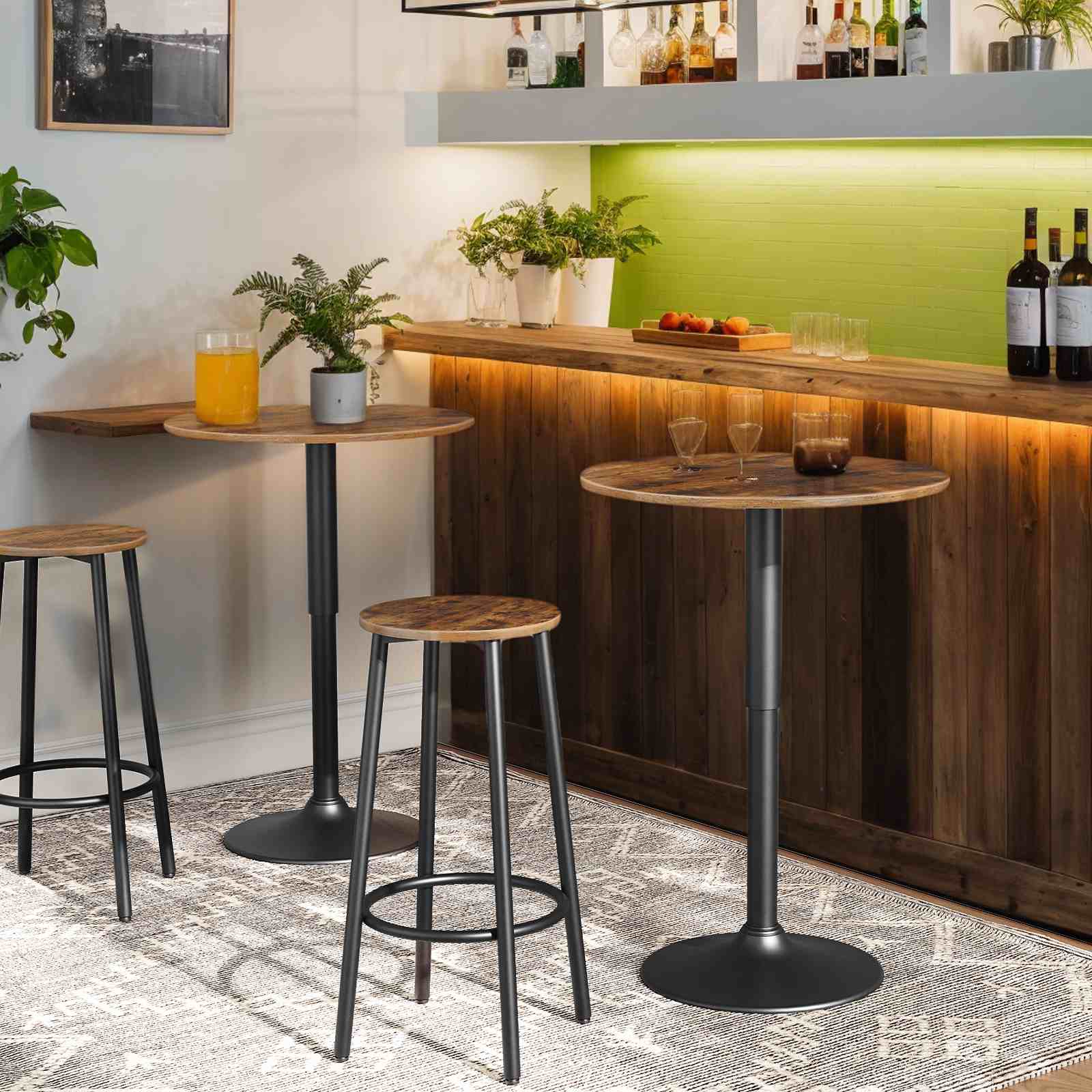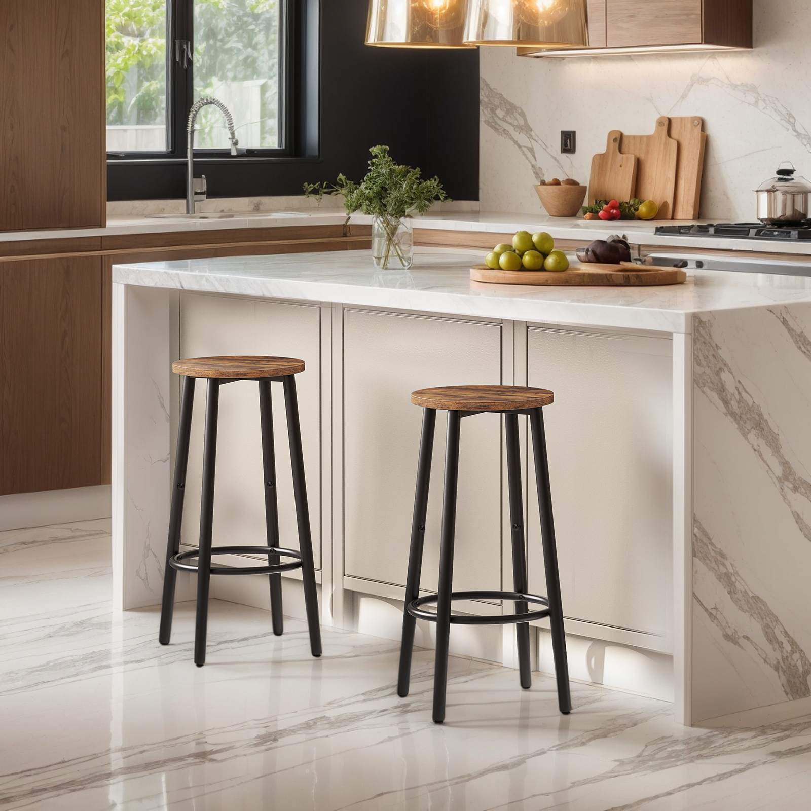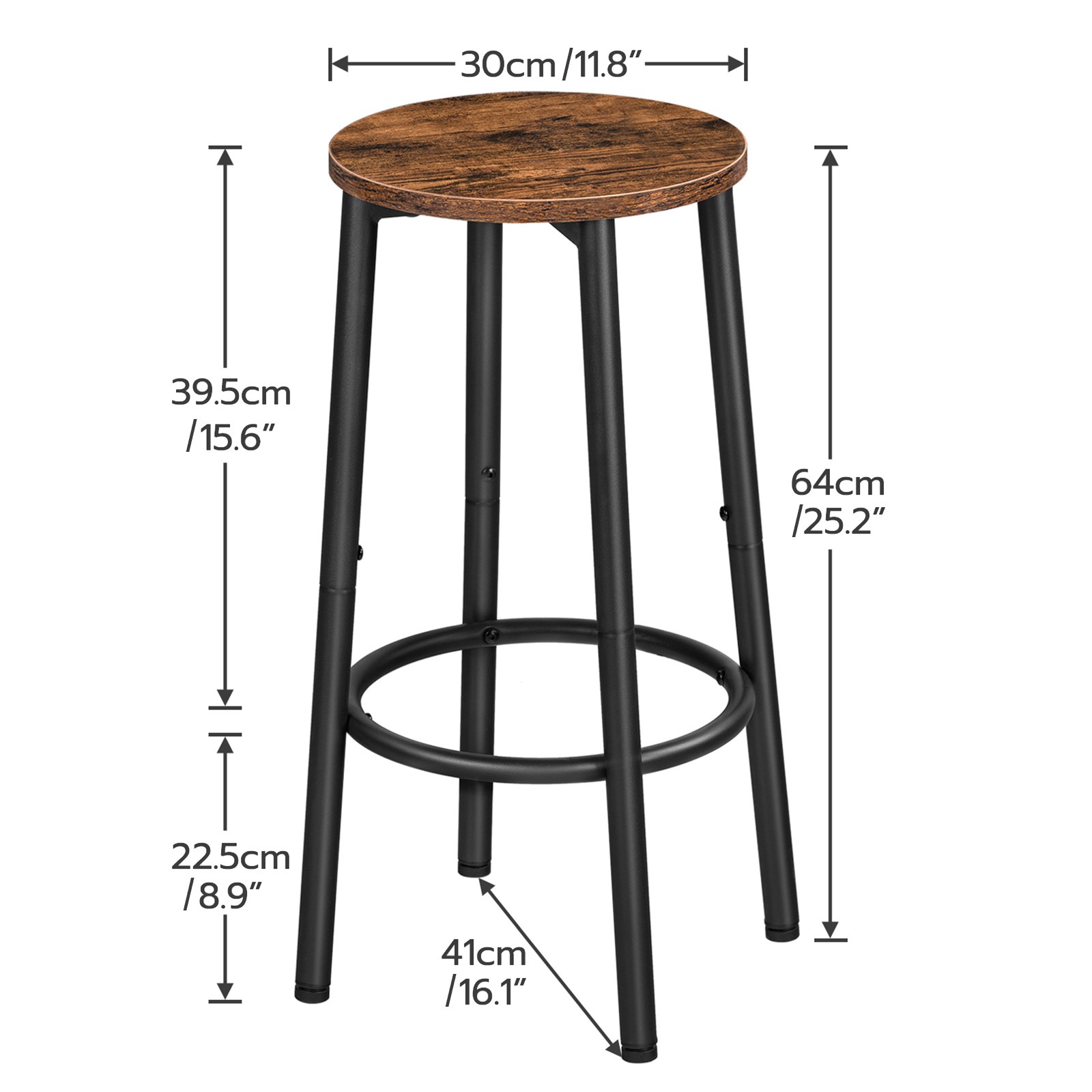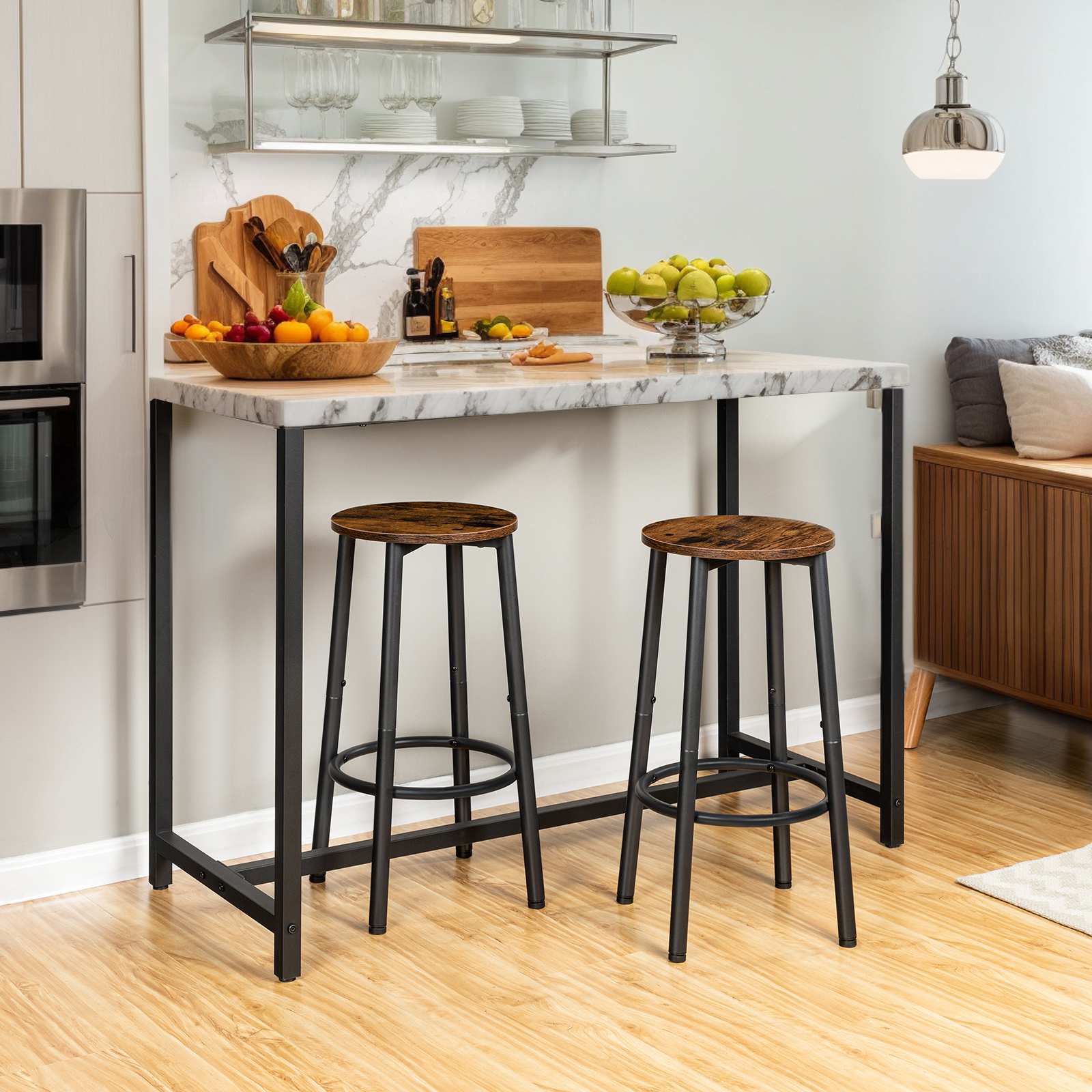 σκαμπό μπαρ, σύνολο από 2 καρέκλες μπαρ, Κουζίνα στρογγυλό ύψος σκαμπό με υποπόδιο, σκαμπό μπαρ πρωινού, ανθεκτικό χάλυβα, για τραπεζαρία, κουζίνα, κόμμα, Εύκολη συναρμολόγηση, ρουστίκ