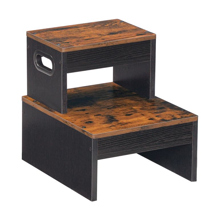 Δύο σκαμνί για παιδιά, Μη-ολισθηρά μικρά σκαμνιά βήμα για νεροχύτη μπάνιου, Εκπαιδευτική κουζίνα και τουαλέτα, ρουστίκ καφέ και μαύρο