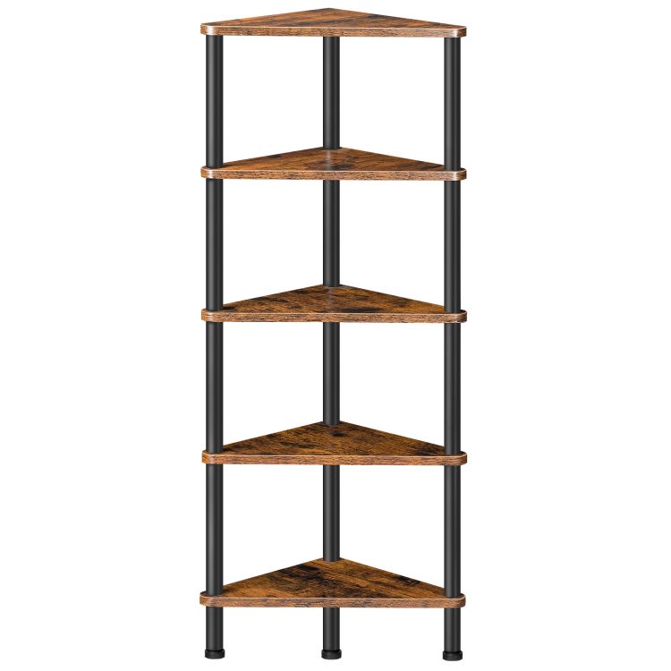γωνιακό ράφι με μεταλλικό πλαίσιο, Βιομηχανική 5-επιπέδων γωνιακό τοίχωμα, βιβλιοθήκη για μικρούς χώρους, υπνοδωμάτιο, καθιστικό, rustic brown bf33cj01