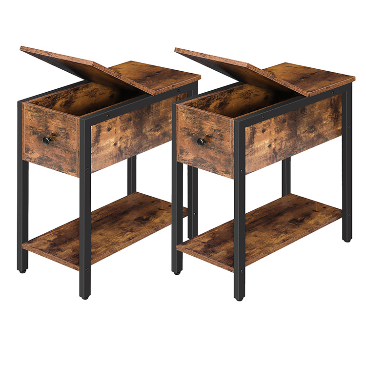 Στεροειδείς πίνακες, Αναστρέψτε το επάνω τραπέζι με ράφι αποθήκευσης, νυχτερινά, Πλευρικά τραπέζια ξαπλώστρες στο υπνοδωμάτιο του καθιστικού, εξοικονόμηση χώρου, τραπέζι έμφασης ξύλου, ρουστίκ