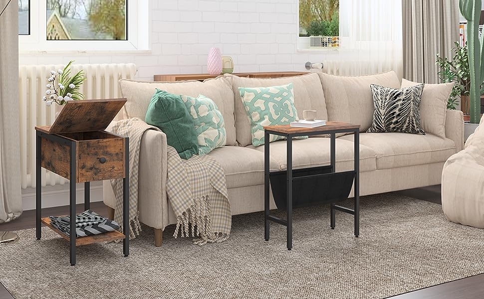 Στεροειδείς πίνακες, Αναστρέψτε το επάνω τραπέζι με ράφι αποθήκευσης, νυχτερινά, Πλευρικά τραπέζια ξαπλώστρες στο υπνοδωμάτιο του καθιστικού, εξοικονόμηση χώρου, τραπέζι έμφασης ξύλου, ρουστίκ