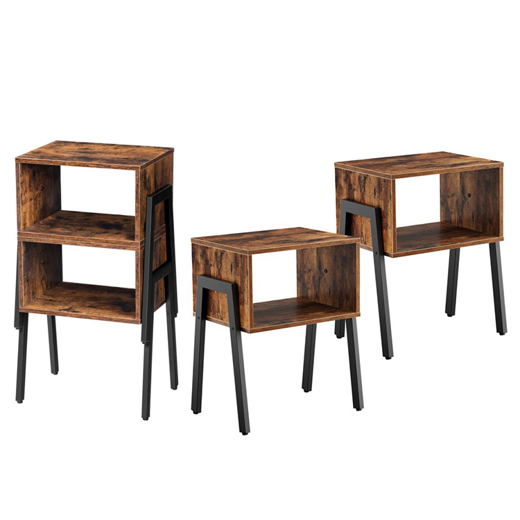σετ νυχτερινών 2, τραπέζι στοίβαγμα, βοηθητικό τραπέζι, τραπέζια με ανοιχτό ράφι αποθήκευσης, για υπνοδωμάτιο, καθιστικό, ρουστίκ