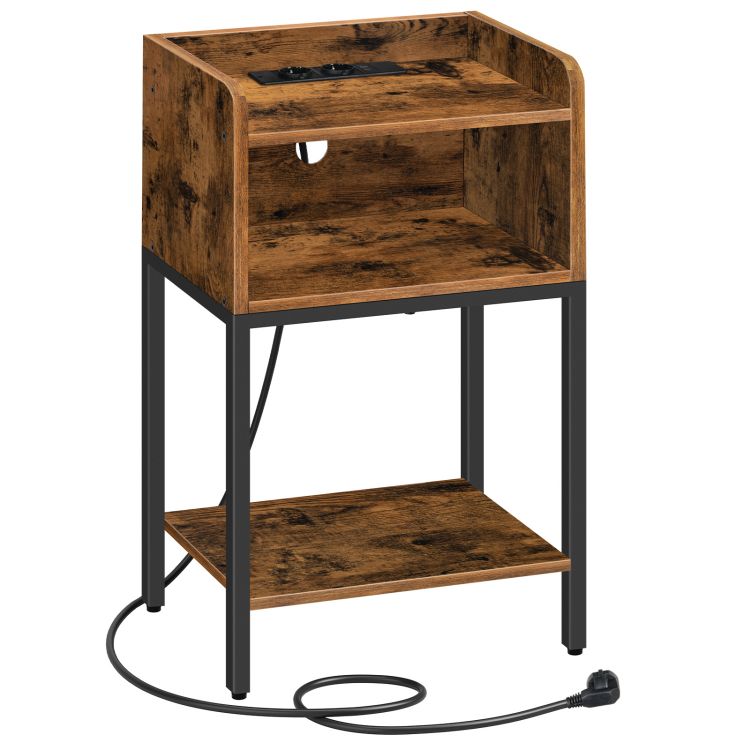 βοηθητικό τραπέζι με σταθμό φόρτισης, κομοδίνο με ανοιχτό συρτάρι, καναπέ τραπέζι με θύρες USB και υποδοχές για υπνοδωμάτιο, καθιστικό, vintage καφέ/μαύρο?