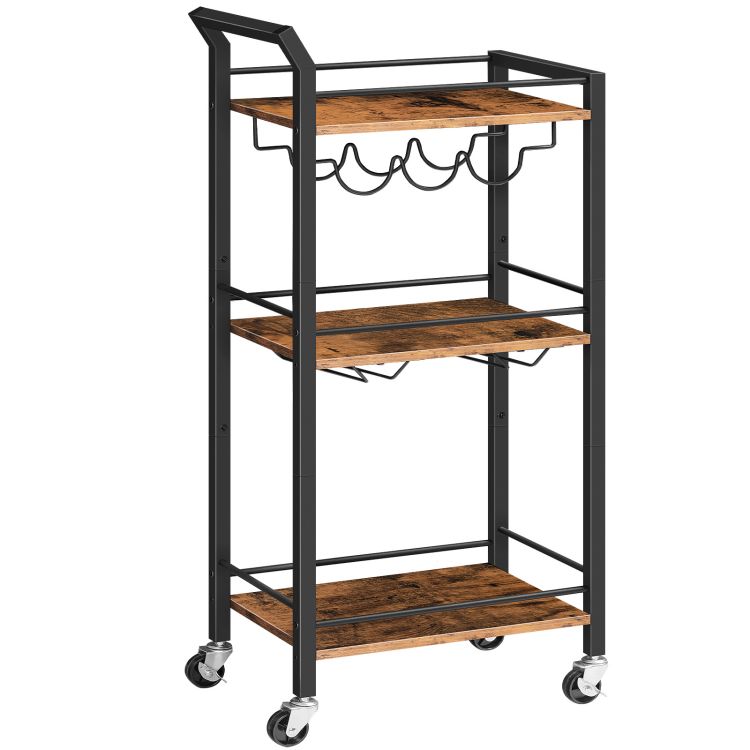 - Easy Maneuverability: Any booze party is incomplete without the participation of this vintage black bar cart. Με 4 περιστρεφόμενοι τροχοί (2 of them with sensitive brakes) and a convenient side handle, which allows you to easily move the bar cart around the room or even take it outside for entertaining on the patio.