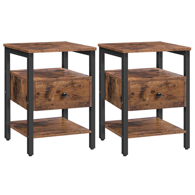 κομοδίνο σετ από 2, Τέλος τραπέζι με συρτάρι και 3 ράφια αποθήκευσης, ρετρό βιομηχανικό στυλ τραπέζι, για σαλόνι, υπνοδωμάτιο, Εύκολη συναρμολόγηση, ρουστίκ καφέ bf42bzp201