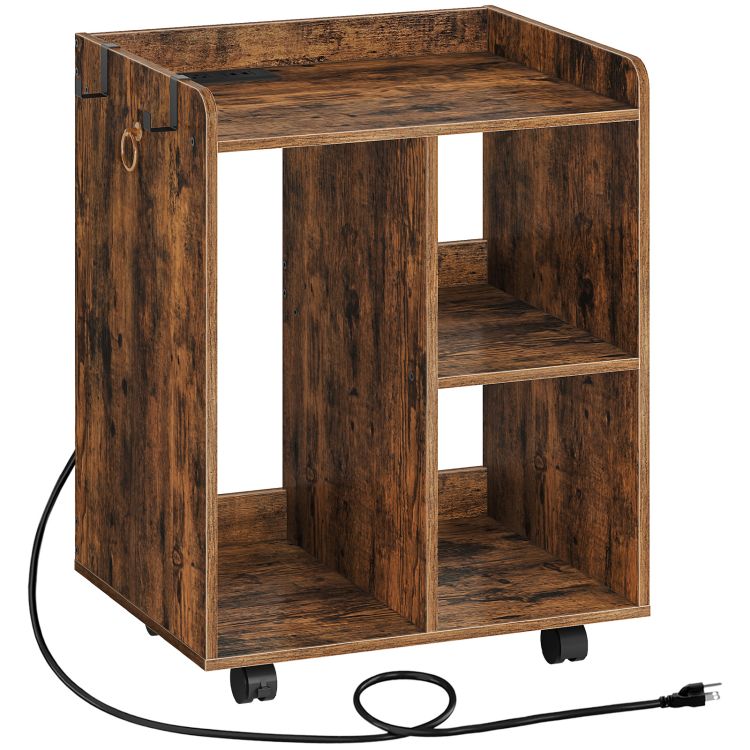 Ο εκτυπωτής στέκεται με έξοδο ισχύος, Πίνακας εκτυπωτή κινητής τηλεφωνίας με ράφια αποθήκευσης, 3-Κολλικό καροτσάκι εκτυπωτή ράφι κάτω από το γραφείο, machine stand with wheels for home office rustic brown bf50ups01