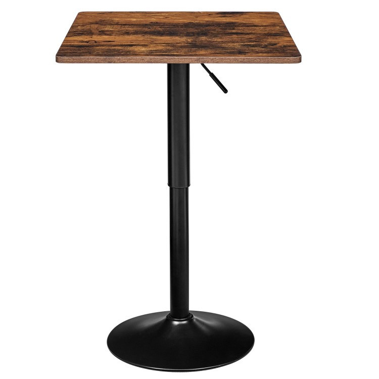 Τραπέζι τετραγωνικής ράβδου, Τραπέζι ψηλού κοκτέιλ, 27"-35.4" Ρυθμιζόμενο τραπέζι παμπ, Πίνακας μπιστρό με βάση, για μπαρ, Καπηλειό, Μπιστρό, Τραπεζαρία, Καθιστικό, Ρουστίκ καφέ και μαύρο