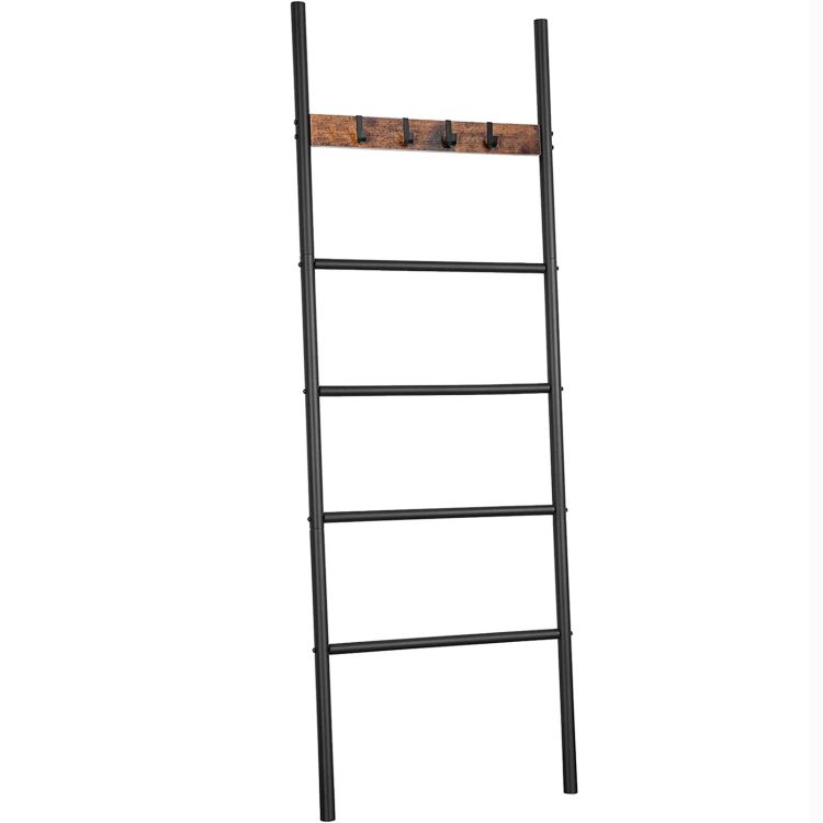 - στιβαρή δομή: the leaning blanket ladder rack is made of iron and particleboard with anti-rust finish on the surface. the ladder legs have non-slip pads, ensuring the ladder can stand stably against the wall, preventing slipping and the floor from being scratched